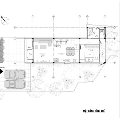 Mặt bằng công năng tầng 1 được kiến trúc sư SYM HOUSE thiết kế với định hướng tối ưu hóa không gian sống, đề cao sự tiện nghi, kết nối liền mạch giữa các khu vực và đảm bảo sự riêng tư cần thiết.