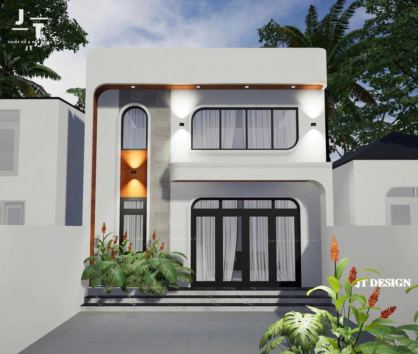 Mặt tiền nhà nổi bật với các mảng kiến trúc đơn giản, hài hòa, kết hợp hệ cửa kính lớn giúp đón ánh sáng tự nhiên hiệu quả. Màu sắc chủ đạo thường là những gam trung tính nhẹ nhàng, mang lại vẻ đẹp thanh lịch và hiện đại. Không gian bên trong được sắp xếp khoa học, đáp ứng tốt nhu cầu sinh hoạt của gia đình.